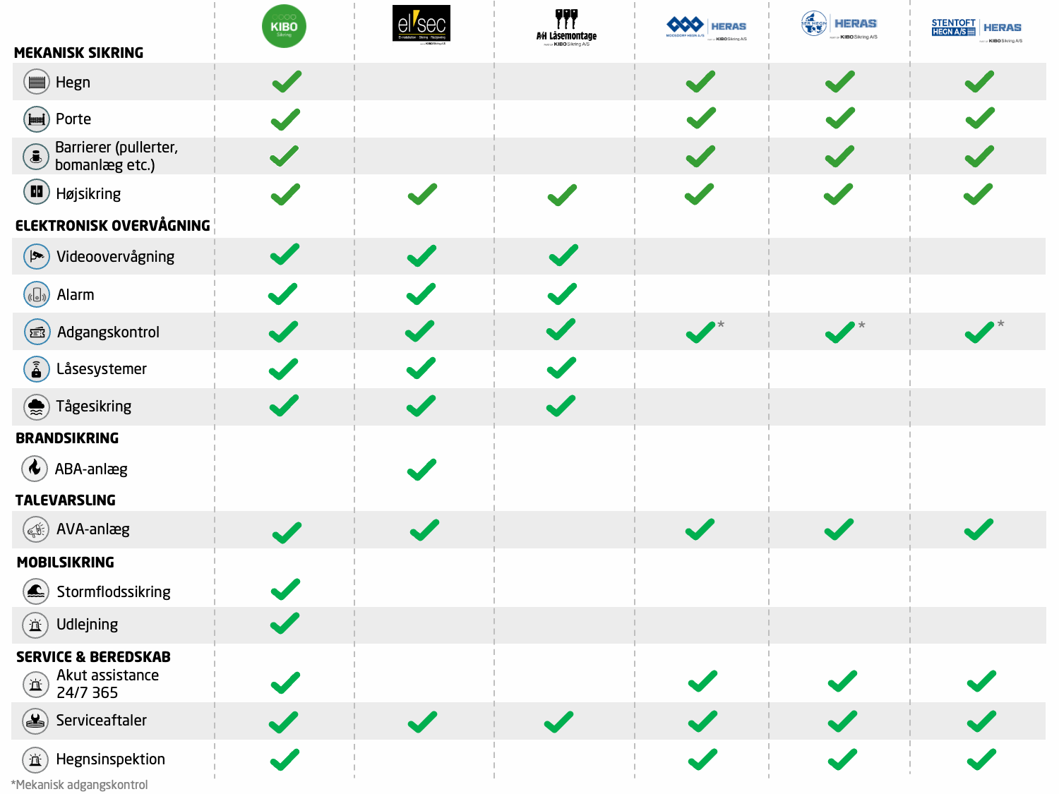 Alle virksomheder i Heras i Danmark er en del af KIBO Sikring. Vi arbejder tæt sammen med vores søsterselskaber i hele landet for at sikre alle vores kunder den bedste service og hurtig responstid. Du vil derfor kunne opleve, at du får besøg af personale iført arbejdstøj fra A/H Låsemontage, Elsec eller Heras. Alle er dog en del af KIBO Sikring, så du kan roligt tage imod dem.