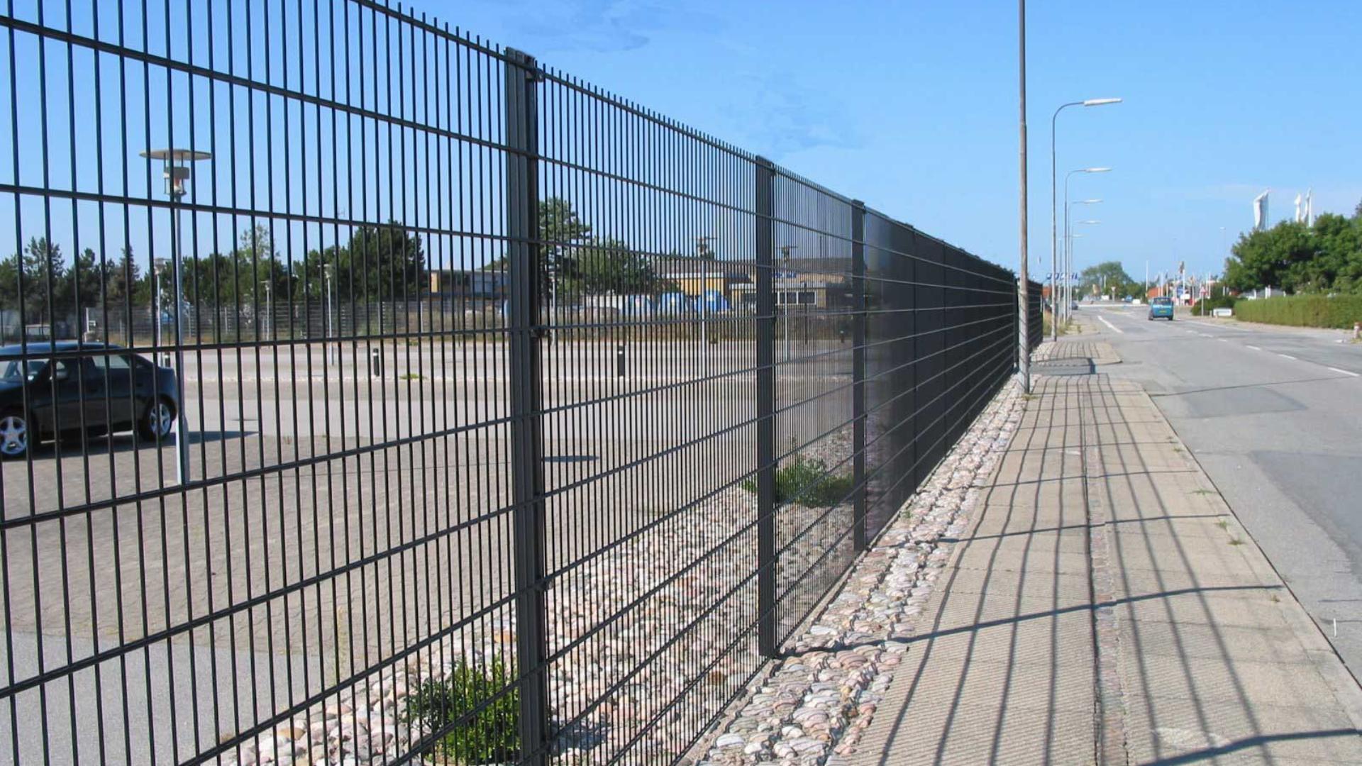 Vores hegn leveres som standard med solidt gitter i varmforzinket stål monteret på stærke hegnspæle. Gitteret er monteret med lyddæmpende clips, der gør eventuelle støjgener minimale.