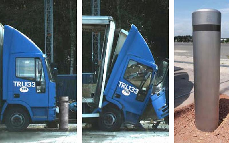 Vores højsikringspullerter er certificerede og påkørsels-testet. De er derfor effektive køretøjshindringer, som standser køretøjer.